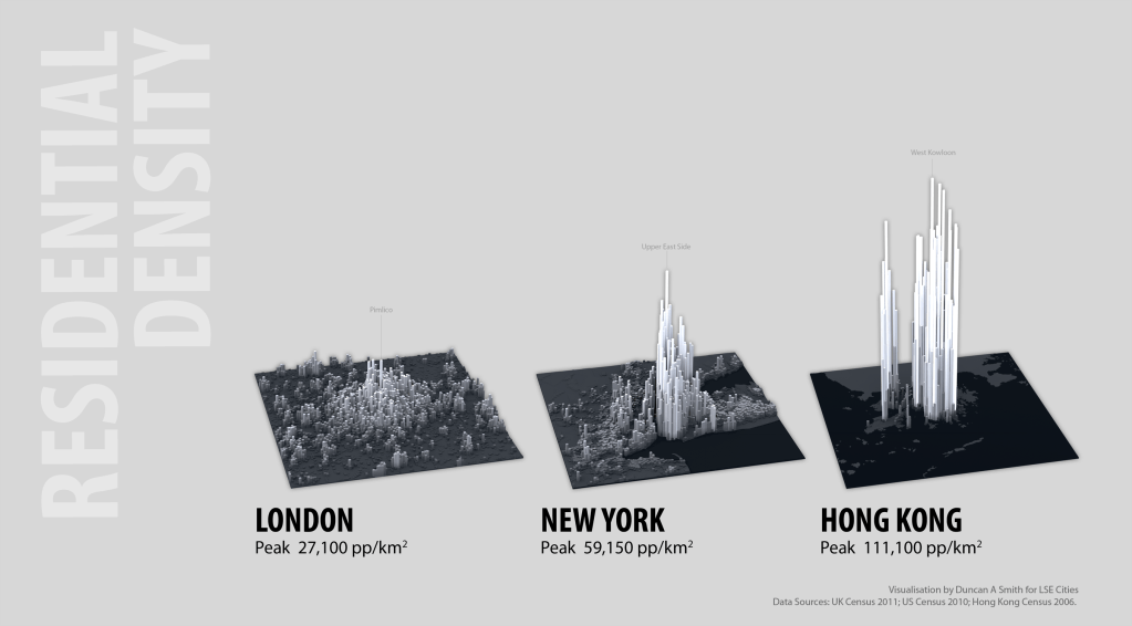 I recently released an interactive map of the new Global Human Settlement Layer (GHSL) produced by the European Commission JRC and CIESIN Columbia University. This dataset makes several advances towards an improved cartography of the diversity of global urbanism. Firstly it is truly global, representing all the world’s landmass and settlements at a higher level of detail, down to 250m. Secondly the population density and built-up layers are continuous: there are no inherent city boundaries or urban/rural definitions (the GHSL includes an additional layer with urban centres defined, but the user can ignore these and create their own boundaries from the underlying layers). Thirdly the dataset is a time-series, including 1975, 1990, 2000 and 2015. Finally the data layers and the methods used to create them are fully open.