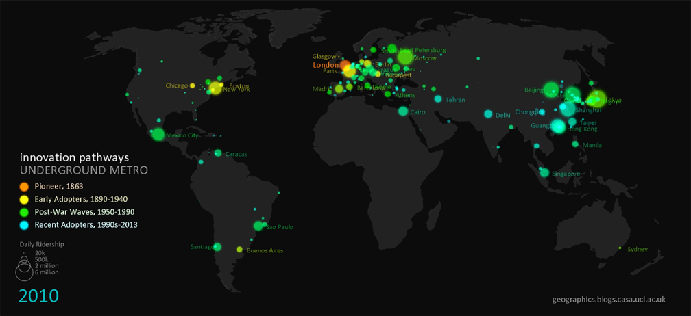 The World Population Density map is exploratory, as the dataset is very rich and new, and I am also testing out new methods for navigating statistics at both national and city scales on this site. There are clearly many applications of this data in understanding urban geographies at different scales, urban development, sustainability and change over time. A few highlights are included here and I will post in more detail later when I have explored the dataset more fully.
